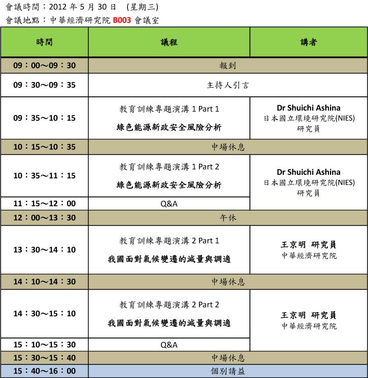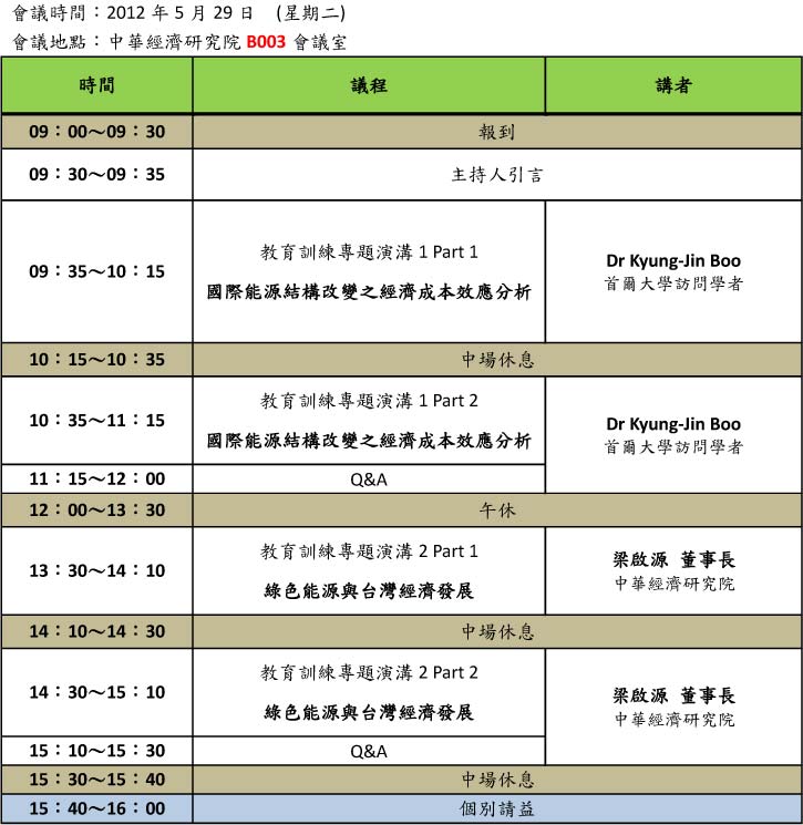 5/30 教育訓練課程II 中華經濟研究院B003會議室