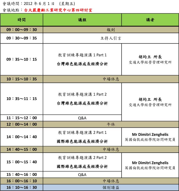 6/1 教育訓練課程III 台大嚴慶齡工業研究中心第四研討室