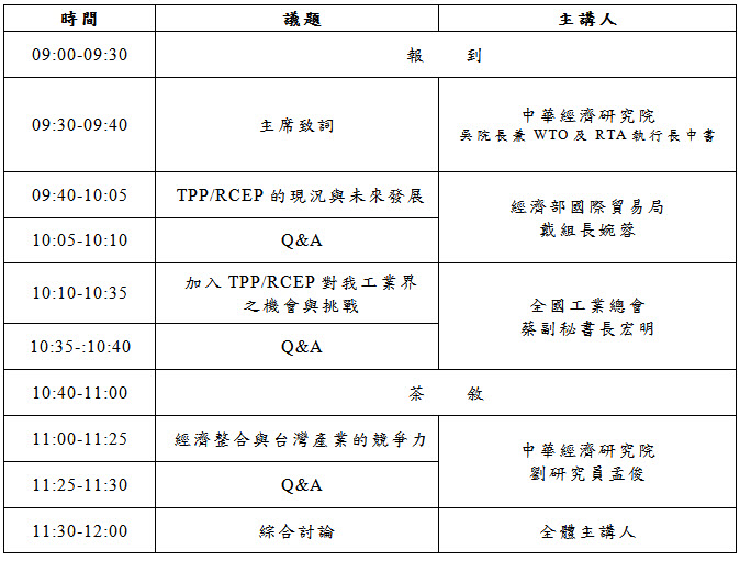 TPP/RCEP對我國工業發展之機會與挑戰 研討會
