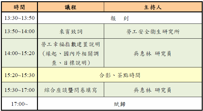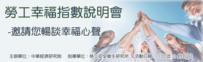 為瞭解我國勞工生活品質,彙整勞工幸福意見,同時提供對話平台,促進政策溝通,特舉辦勞工幸福指數說明會,廣徵勞工朋友們的意見和想法,說出勞工朋友們的心聲。